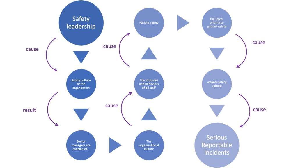 Safety leadership… is a critical factor that determines the safety culture of the organization. It is because senior managers are capable of effectively directing the medical staff to foster the culture and commitment required for tackling the underlying systematic causes of medical errors (REF). The organizational culture significantly influences the attitudes and behaviors of all staff (REF), in turn greatly affecting patient safety. In other words, the lower priority to patient safety leads to weaker safety culture that contributes to SRI.